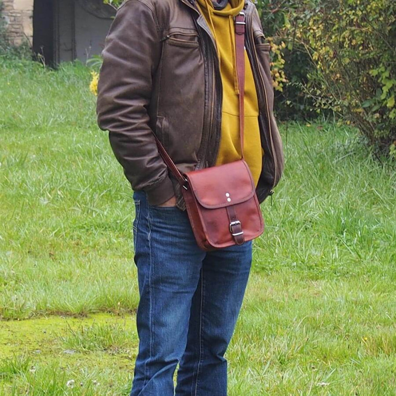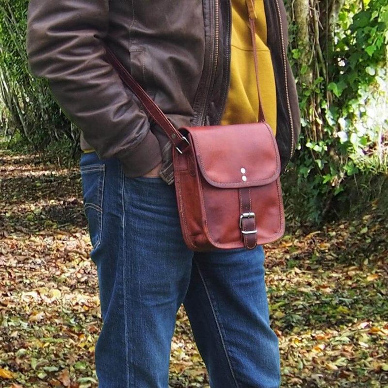 Petite sacoche homme en cuir vintage - 1 boucle - S