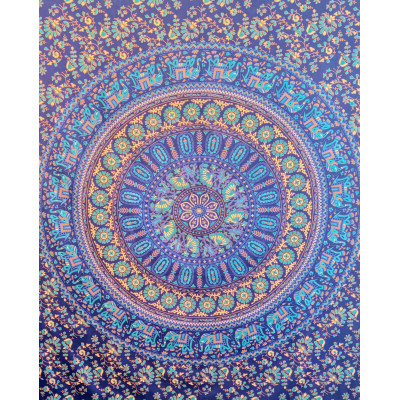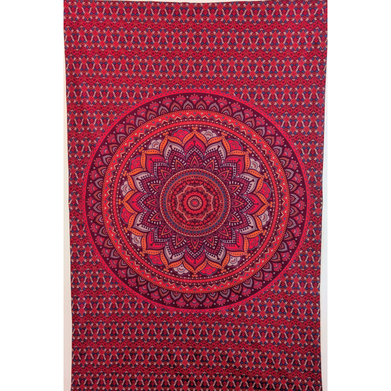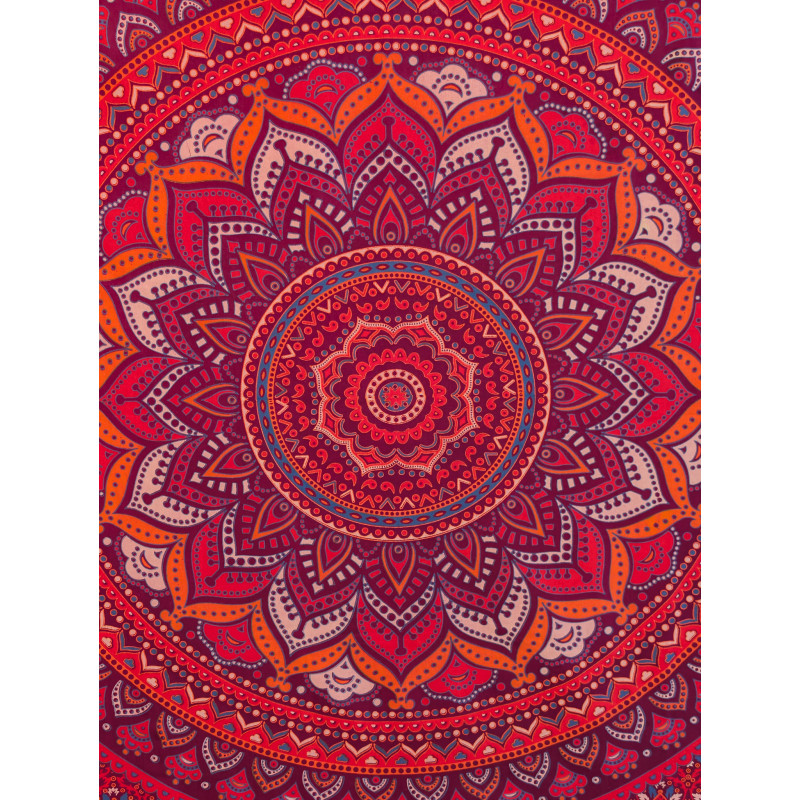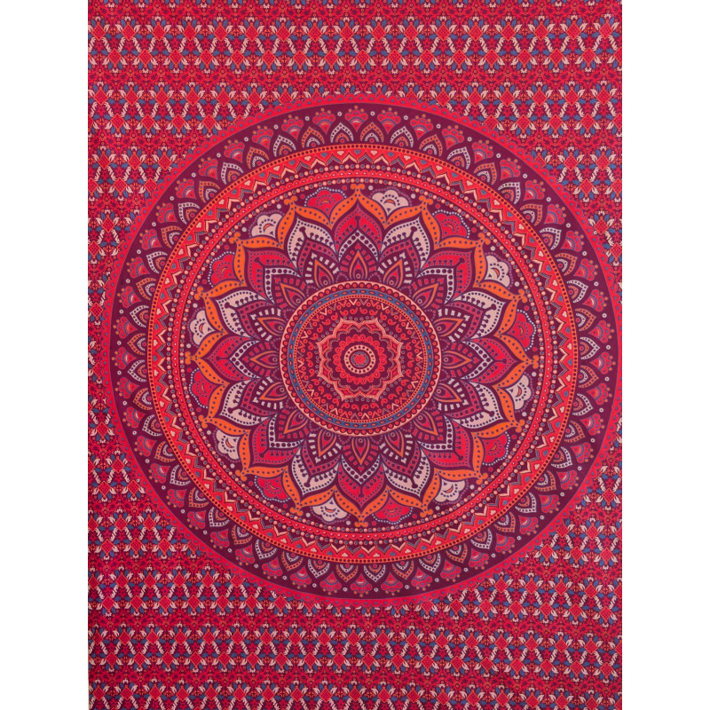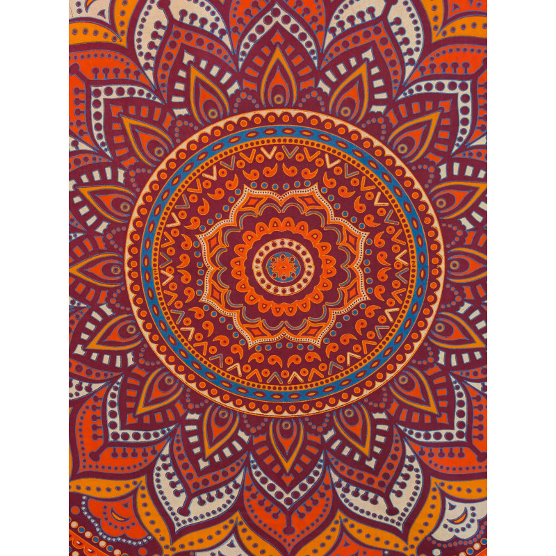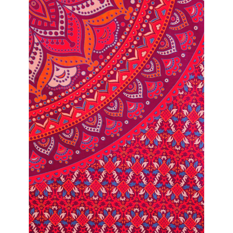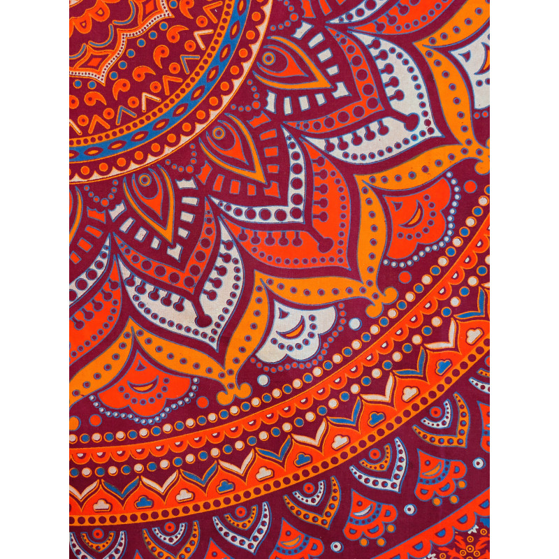 Tenture murale indienne mandala lotus en coton rose fuchsia, orange et violet - 140 x 200 cm