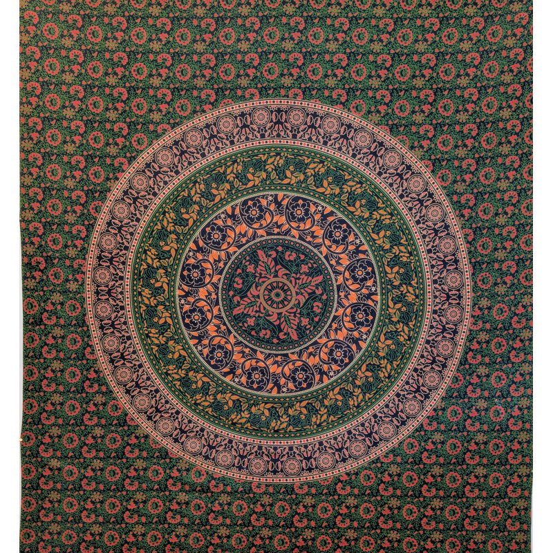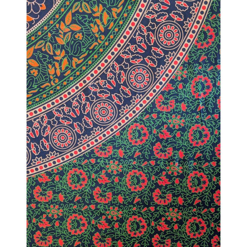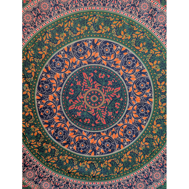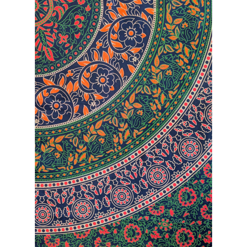Tenture murale indienne mandala floral cachemire en coton bleu marine, vert et corail - 200 x 240 cm