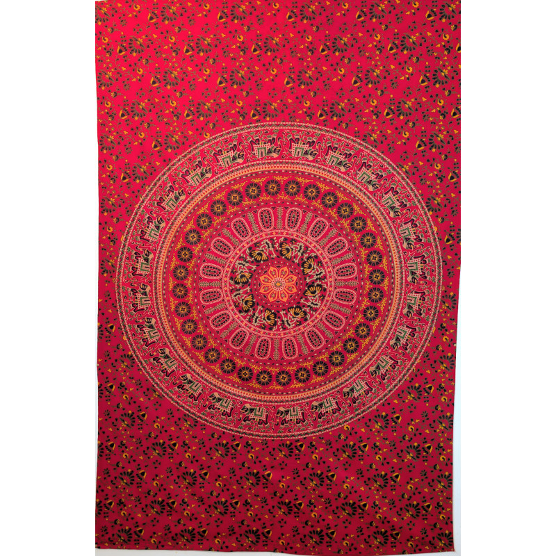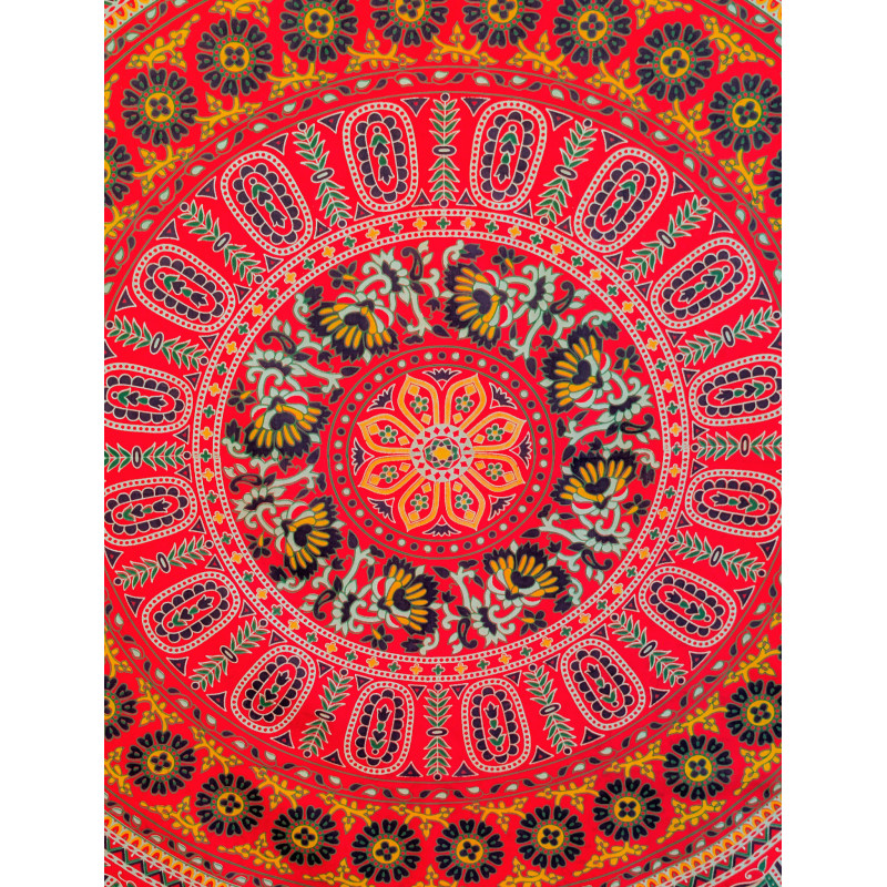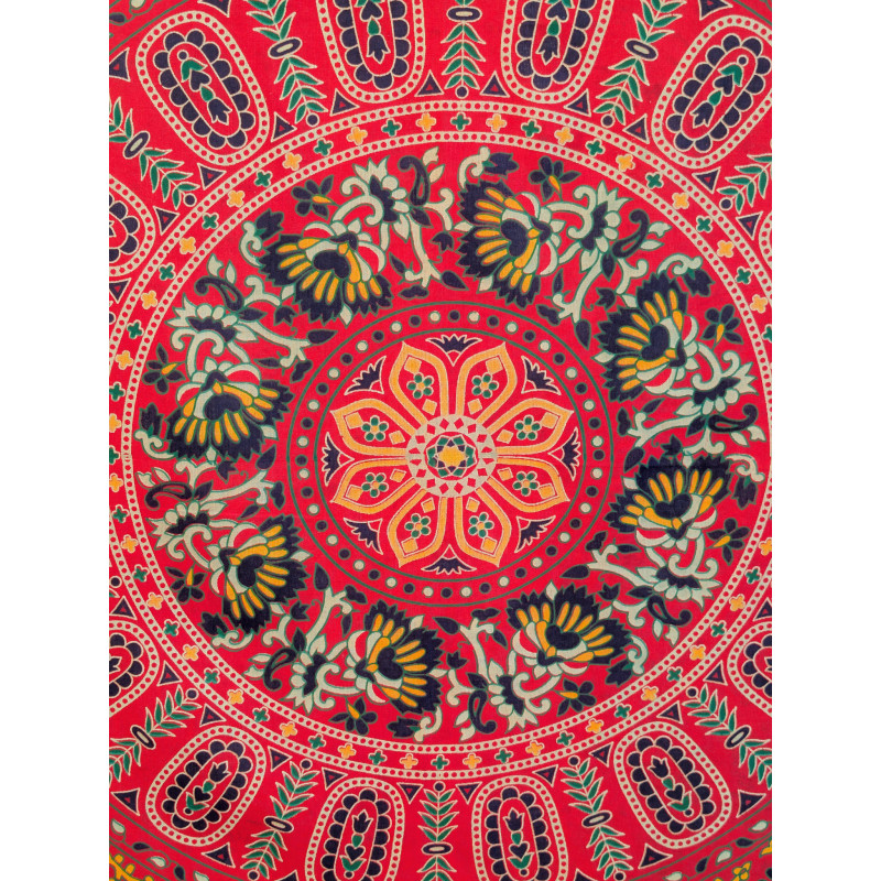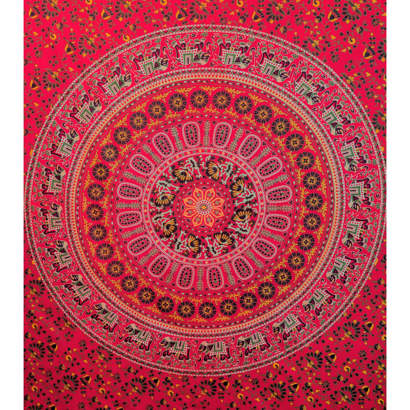 Le dessin circulaire du mandala structure l’espace et attire naturellement le regard. Les fleurs stylisées adoucissent l’ensemble, tandis que les éléphants ajoutent une dimension symbolique et artisanale très appréciée dans l’univers de la décoration indienne. Cette tenture trouve facilement sa place dans une chambre, un salon, un bureau, un coin lecture ou un espace détente. Accrochée au mur, elle devient un point focal fort ; utilisée autrement, elle peut aussi servir de couvre-lit 2 personnes, dessus de canapé, nappe, rideau, séparation d’espace, drap de plage ou de pique-nique, voire de paréo selon l’usage recherché.