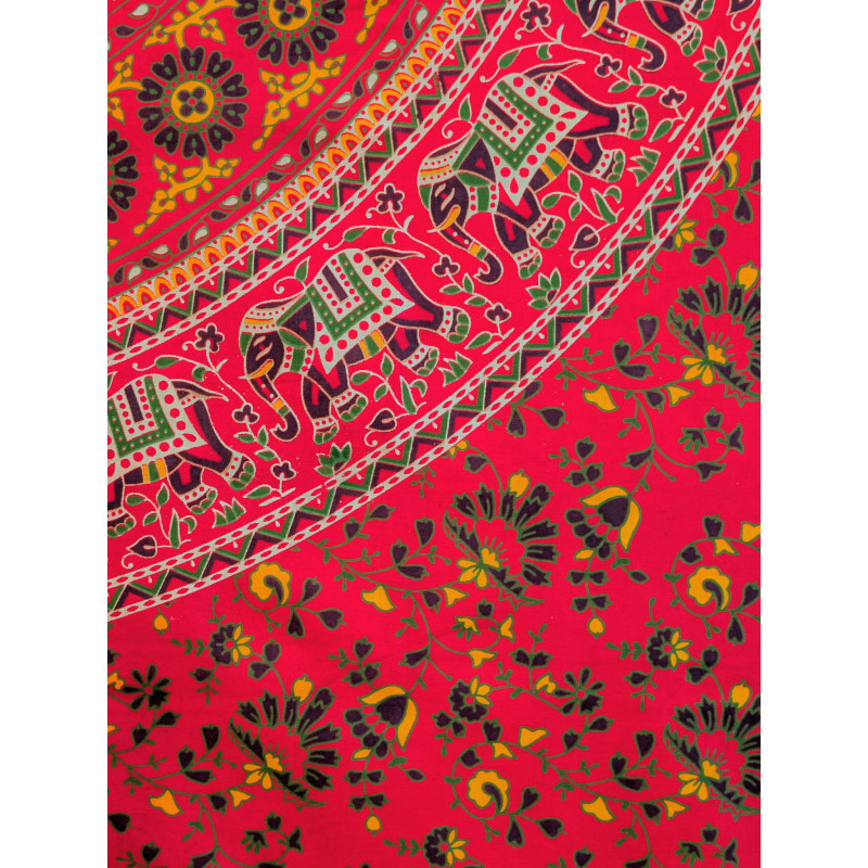 Tenture murale indienne mandala éléphants en coton rouge fuchsia, vert et jaune - 140 x 200 cm