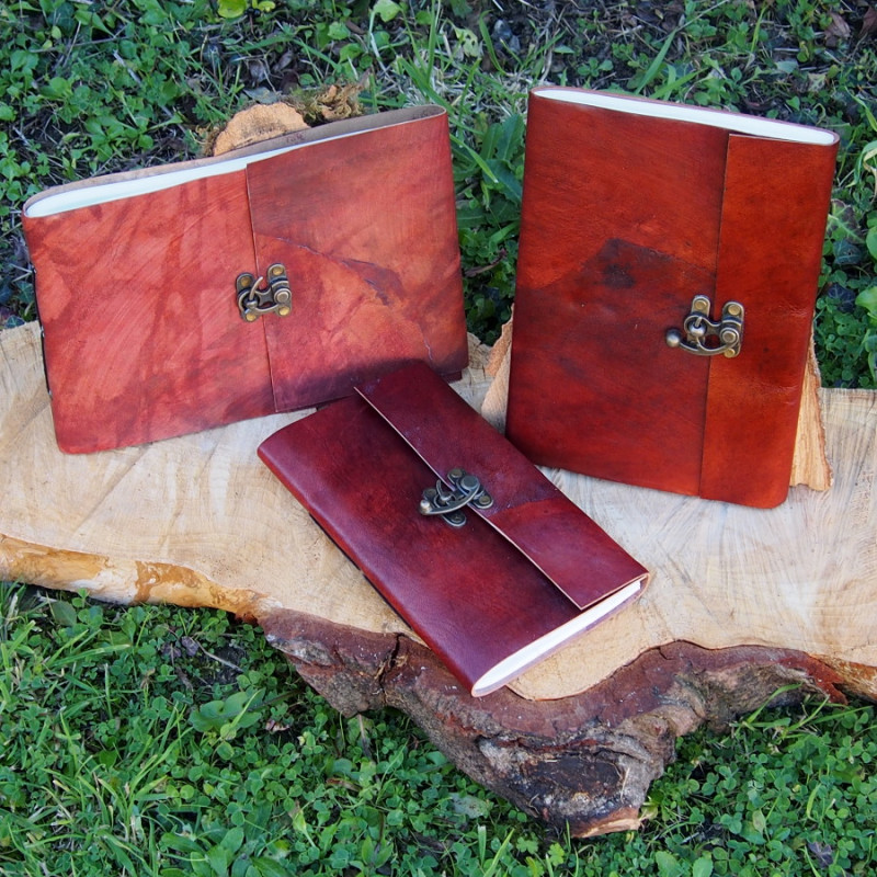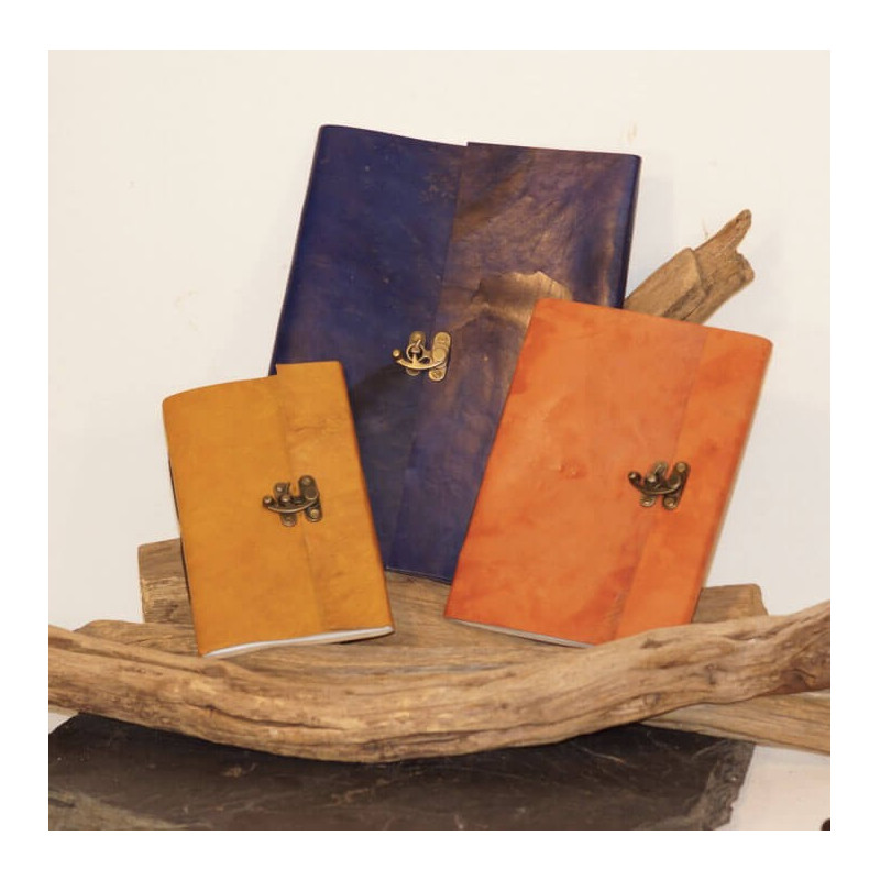Calepin en cuir de chèvre coloré L portrait – Crochet en laiton vieilli
